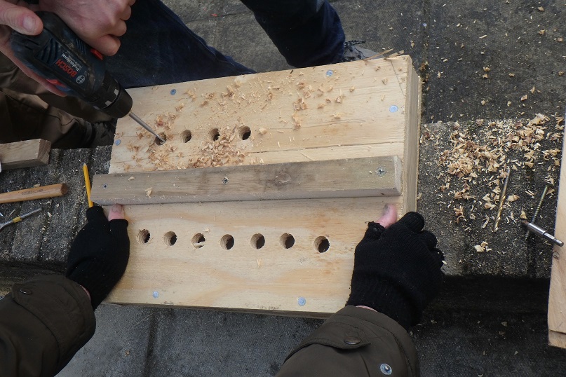 Our community in Wales is building a village shed at present. So one Sunday when we had a lot of folks around to raise the main beams we turned the event into a bit of a celebration, and a couple of us set to building a dulcimer out of the scrap wood from the shed, which had to be ready to play to the workers by lunchtime.